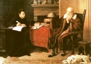 Referencia de la imagen: Galileo, ciego, dicta al P. Settimii s.p. sus últimos descubrimientos. Tal era el tema del concurso que ganó este cuadro pintado por Cesare Cantagalli y conservado en la Academia de Bellas Artes de Siena.